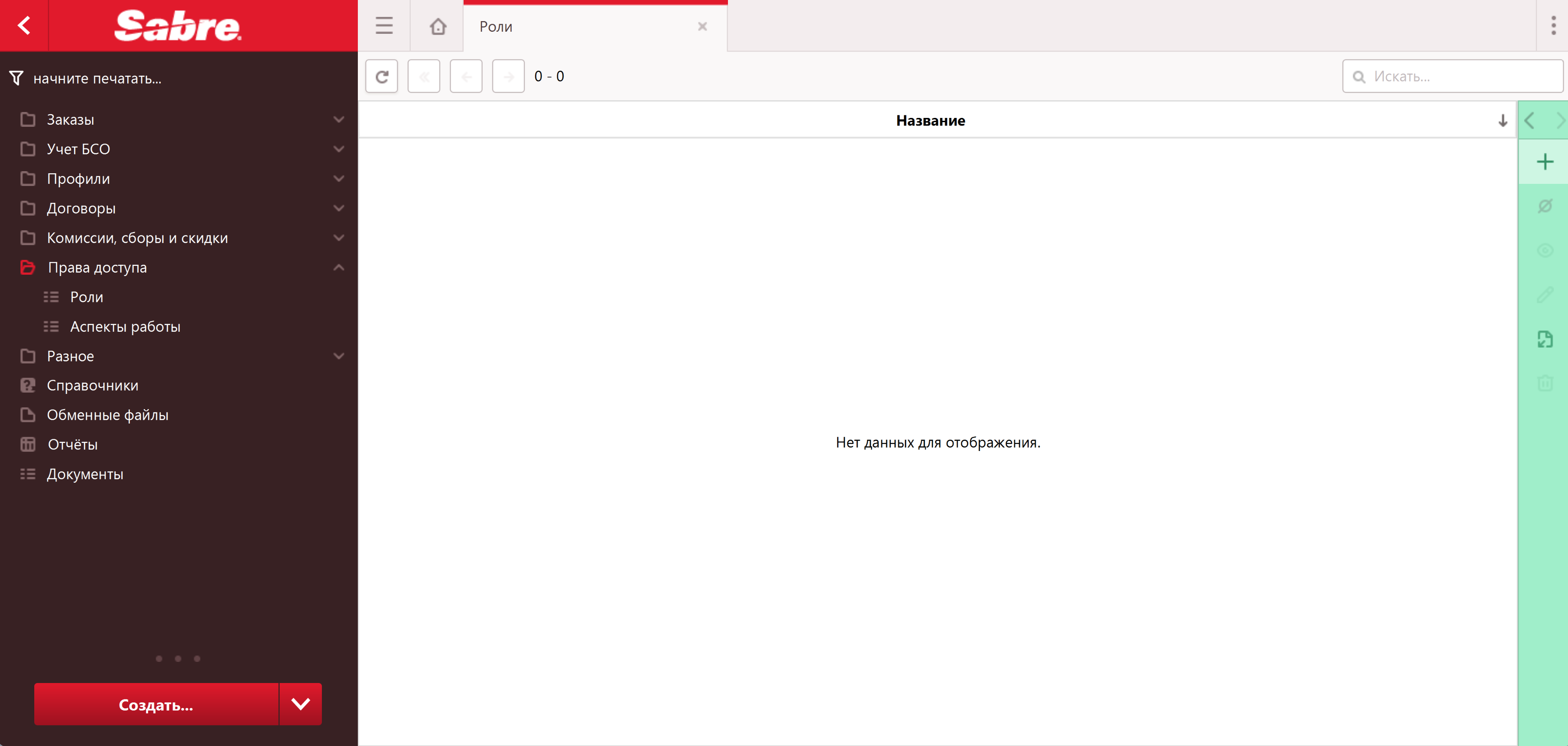 Для создания новой роли нужно на панели инструментов в правой части экрана нажать кнопку + (Создать новый объект):
