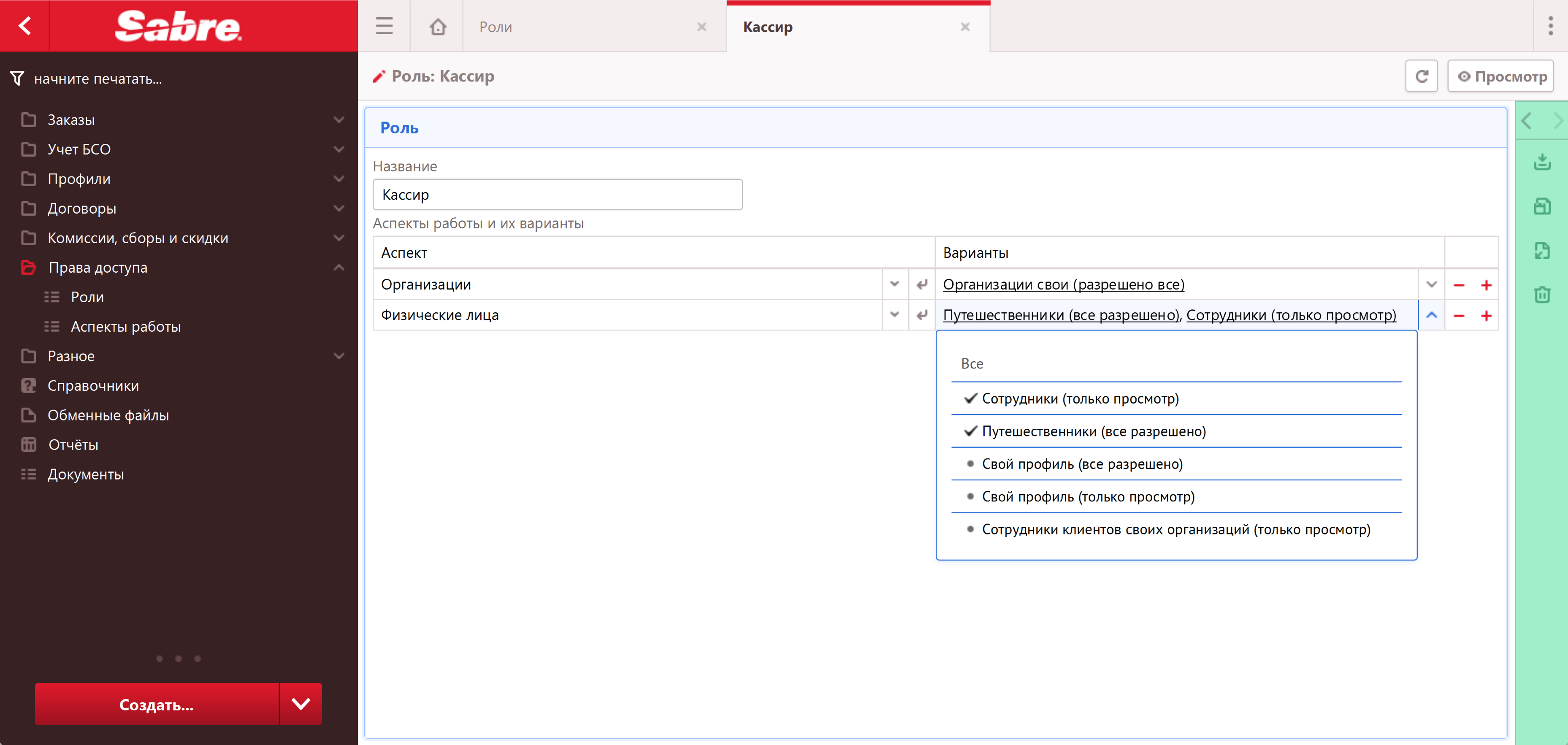 Выберите необходимую роль из списка и сохраните профиль кнопкой Сохранить: