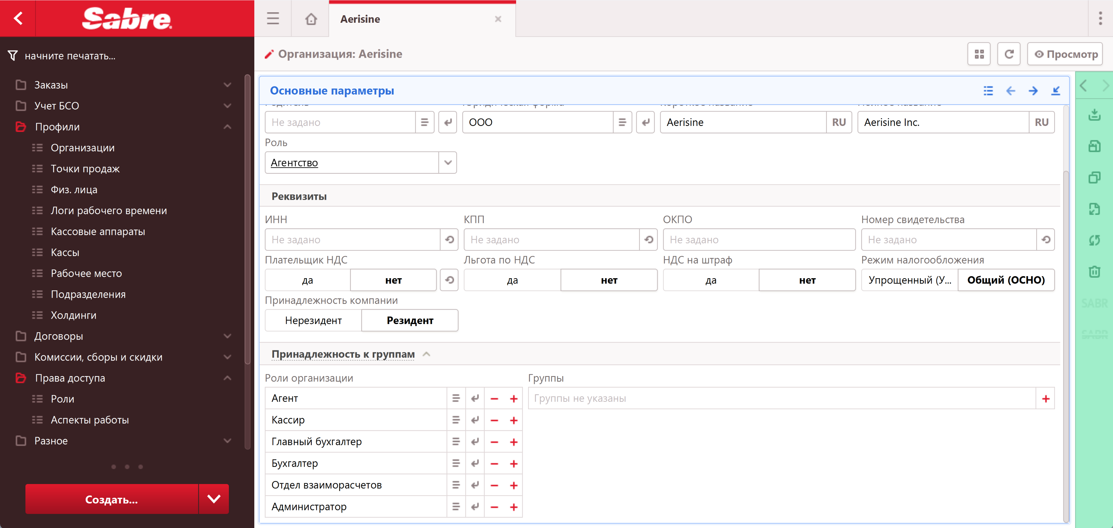 Одни и те же роли могут быть использованы несколькими организациями. Прежде чем назначать роли пользователям нужно сперва указать какие роли применимы в рамках вашей организации. Для этого, откройте редактор организации и перейдите в раздел Основные параметры. В нижней части панели расположена секция Принадлежность к группам: