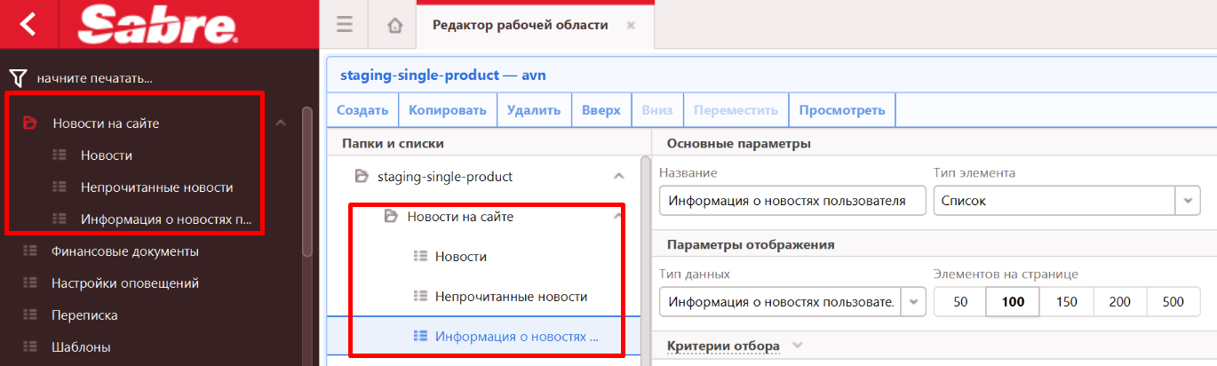 В рабочую область Mid Office Manager нужно добавить папку с тремя списками: "Новости", "Непрочитанные новости", "Информация о новостях пользователя".