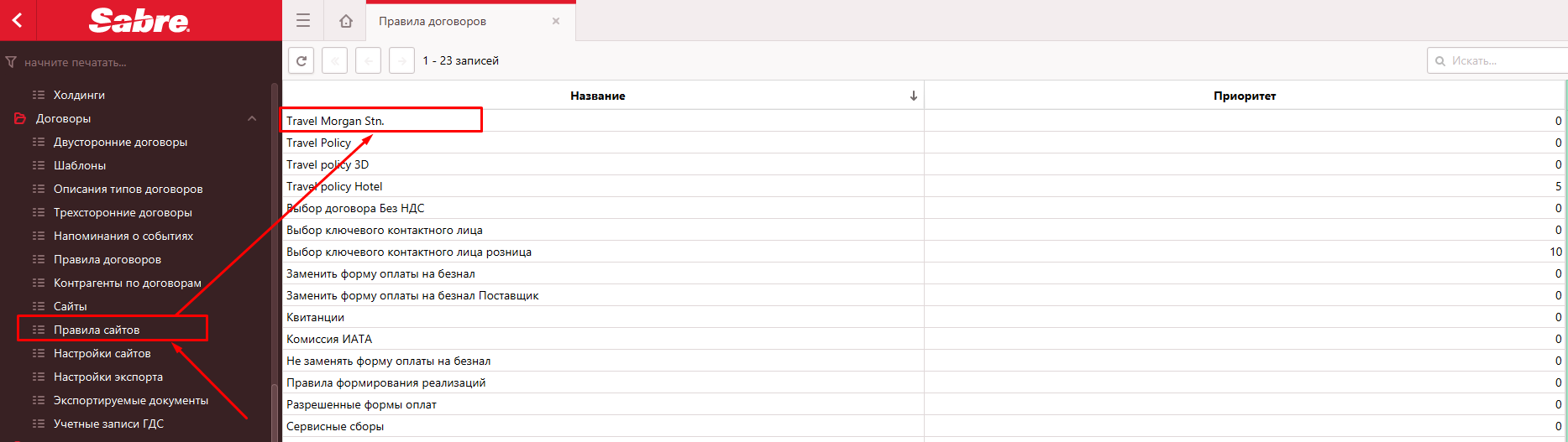 1.1. Открыть правила договоров - группа правил трэвел политики компании клиента