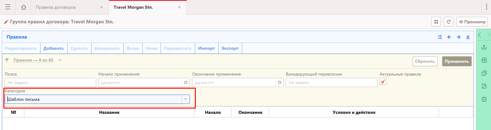 1.1. Открыть правила договоров - группа правил трэвел политики компании клиента