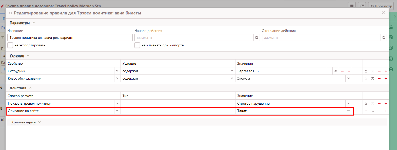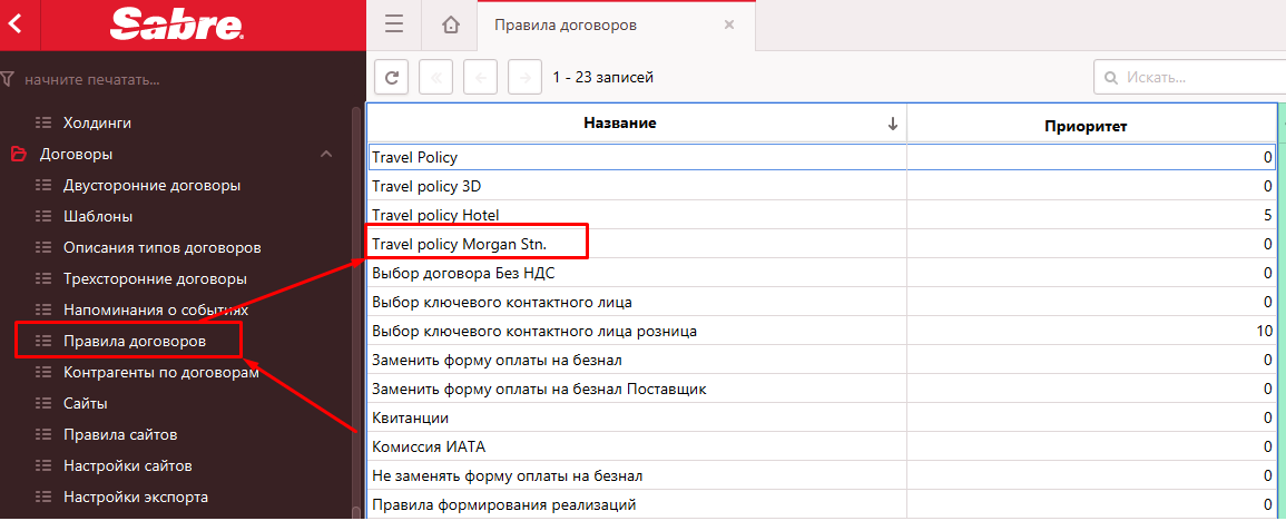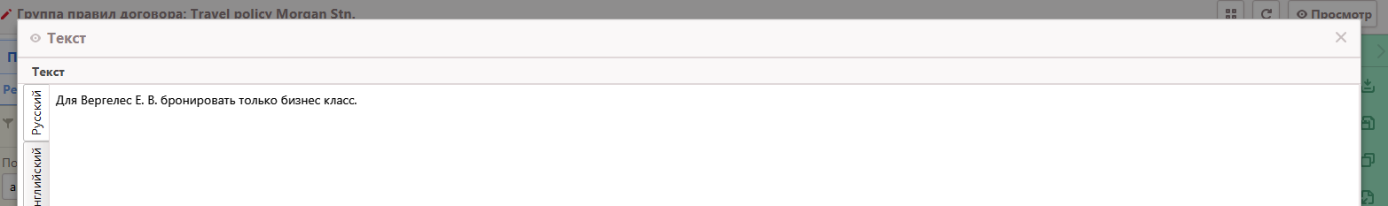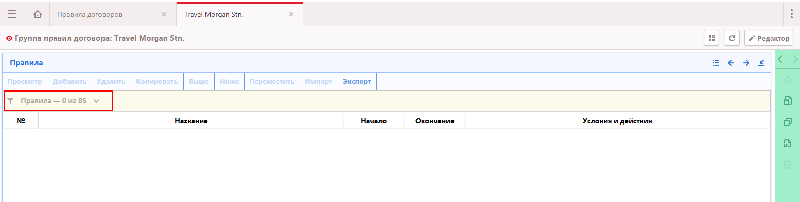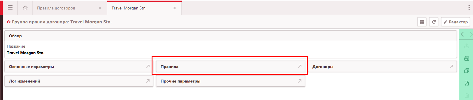 1.1. Открыть правила договоров - группа правил трэвел политики компании клиента