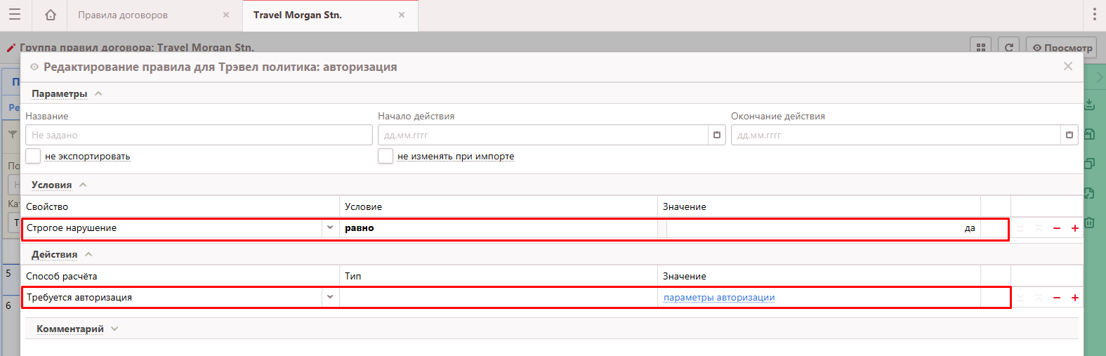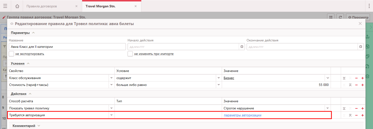 2. Добавить Действие "Требуется авторизация" в правила трэвел политики, если авторизацию будут давать несколько сотрудников, например, из разных отделов или к каждому правилу travel policy будет прописан отдельный авторизующий сотрудник.