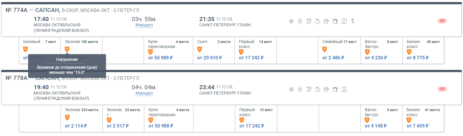 1. Время до отправления (дни) – работает в случае ж/д аналогично условию пункта 3 для авиабилетов.