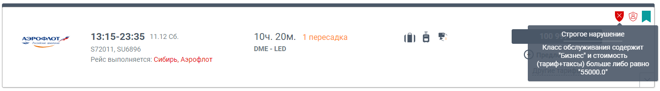 6. Условие на ограничение классов обслуживания, например, "Бизнес", "Первый".