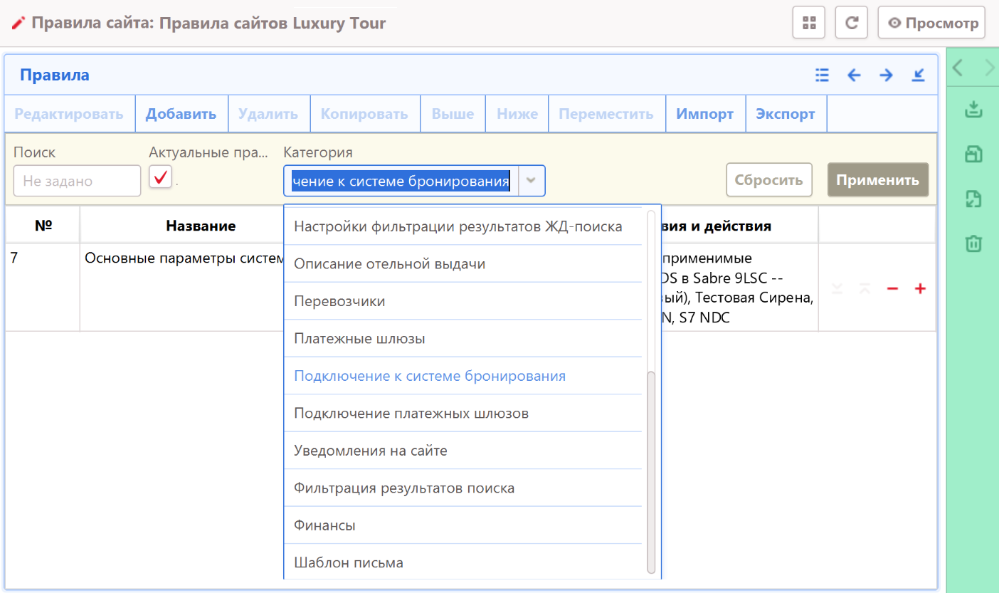 Выберите эту категорию и добавьте правило подключения систем бронирования: