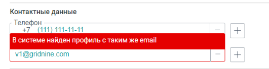 При включенной опции выполнения проверки уникальности email при сохранении физ. лица" сайт не даст сохранить профиль, если существует хотя бы один профиль с таким же email (не зависимо от того, одинаковые у них паспортные данные или нет):