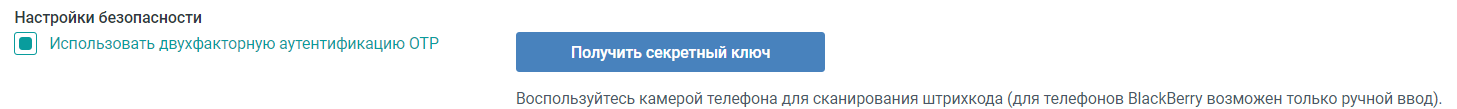 Также для усиления защищенности учетной записи пользователя на сайте реализована двухфакторная аутентификация.