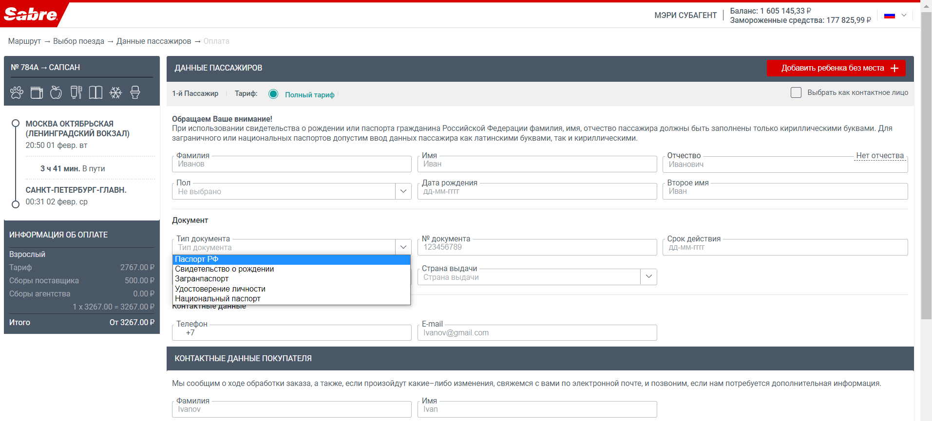 В разделе 5.Настройки сайта было краткое описание инструмента, позволяющего включить список типов документов на странице сайта "Данные пассажиров". В настоящем разделе раскроем особенности ввода документов при оформлении услуг на сайте B2B для российского и национальных рынков.