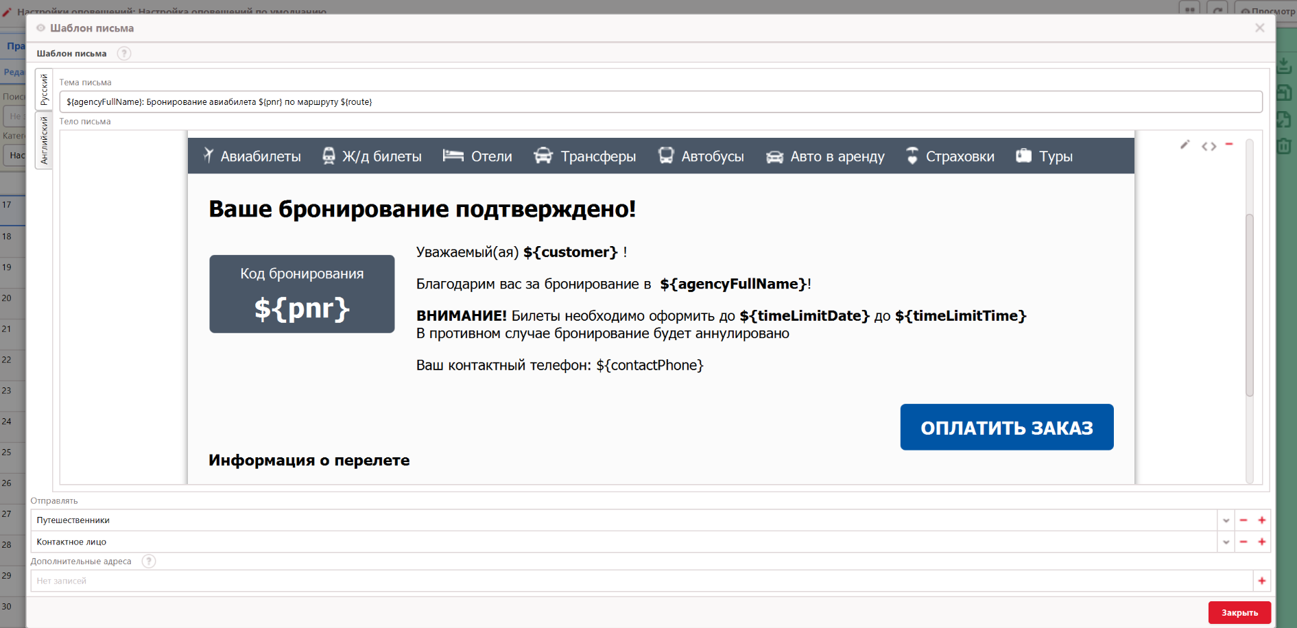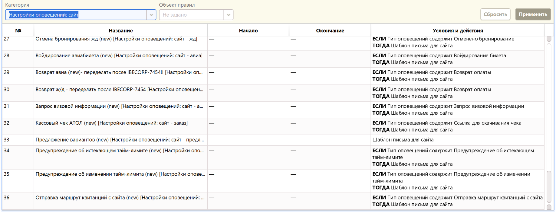 Настройка оповещений сайта
