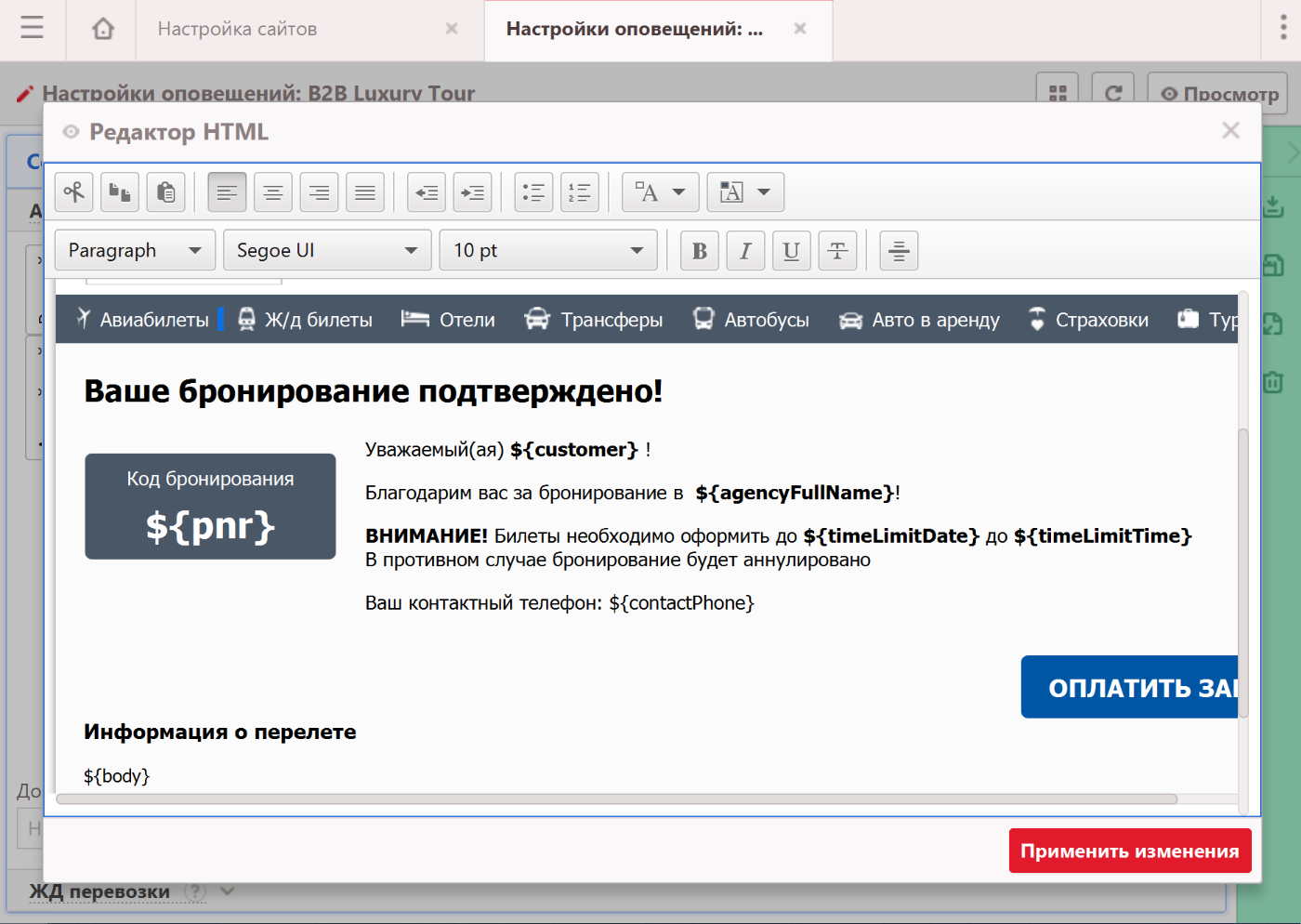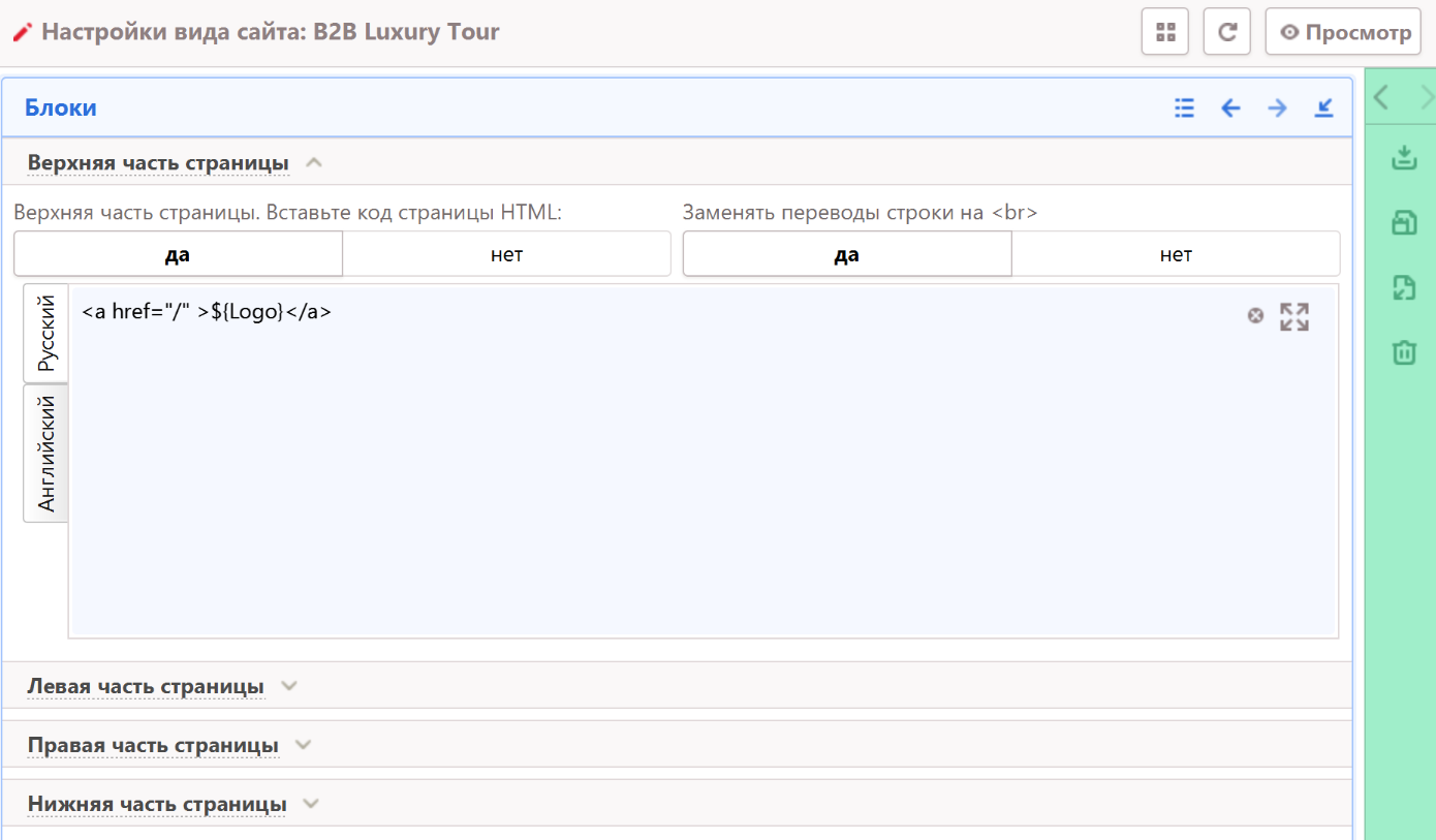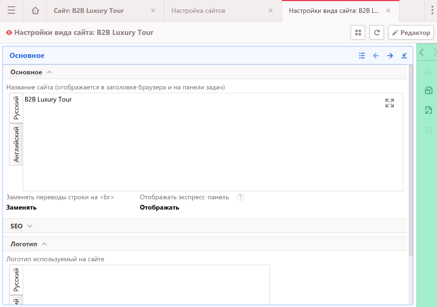 Настройки сайта